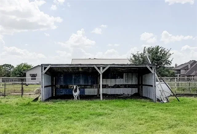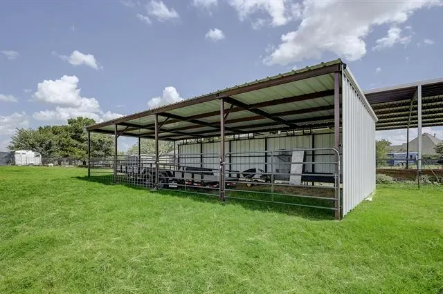 If you have a recreational vehicle, you’ll appreciate the dedicated pad with full hookups—large enough to fit a 40-foot RV with ease. Need space for animals? The land is fenced and currently home to goats. There’s a sturdy 20 by 20 shelter standing 7 feet tall for them, plus extra covered parking for tractors and trailers, measuring 20 by 40 with 11-foot clearance.
