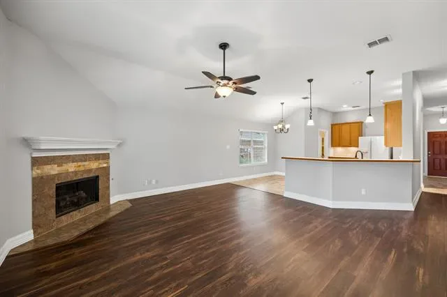 Located in the established Sendera Ranch community, this 3-bedroom, 2-bath home offers a functional open-concept layout and an incredible opportunity to make it your own. With 1,784 square feet, the home features a spacious living area with a fireplace and elevated ceilings that flows seamlessly into the kitchen and dining space—ideal for everyday living and entertaining.