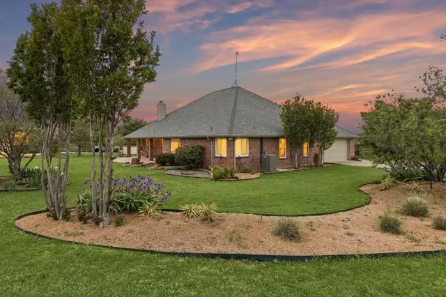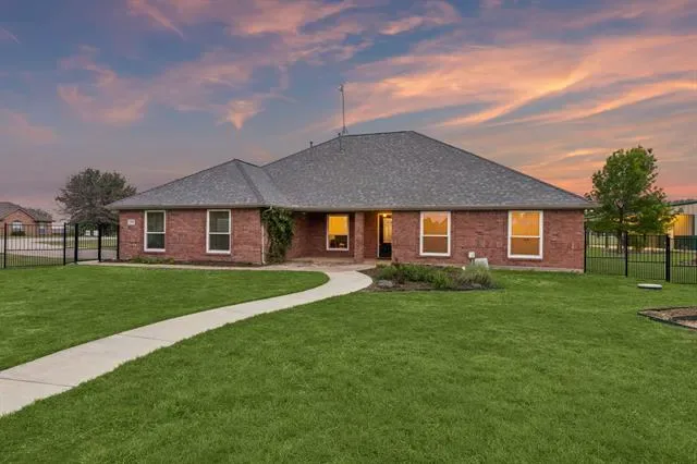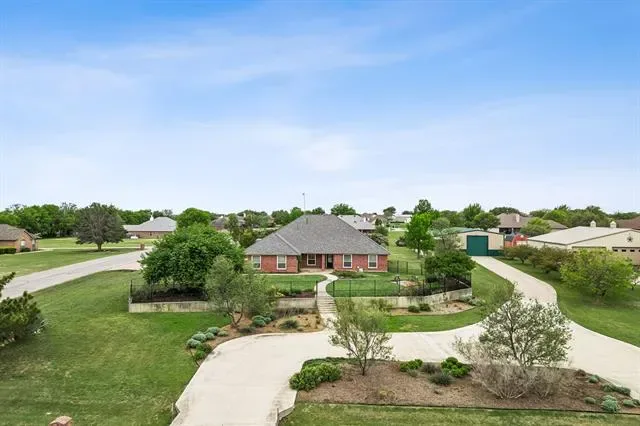 Perfectly situated on over one acre corner lot in the highly sought after community of Sun Valley Estates, this meticulously maintained property has it all. A stunning, elevated homesite framed by extensive manicured landscaping &' a classic wrought iron fence. The expansive green space, gardens, &' serene sunset views offer the perfect backdrop for outdoor living and show pride of ownership. Main home features 3 generously sized bedrooms, a lovely secondary bath &' wonderful storage. The Spacious primary suite features warm wood flooring, vaulted ceilings, &' abundant natural light. Spa-inspired primary bathroom featuring dual vanities, a relaxing jetted soaking tub, glass-enclosed shower, &' oversized walk-in closet. Beautifully updated kitchen showcases custom-painted cabinetry, rich granite countertops, and a modern mosaic backsplash. The thoughtfully designed layout offers a center island, abundant storage, and seamless connectivity to the main living space—perfect for both everyday living and effortless entertaining. The living room is anchored by a warm brick fireplace and expansive windows that fill the room with natural light. The open-concept design flows effortlessly into the dining area, while durable tile flooring and neutral tones create a timeless, comfortable setting for both relaxing and entertaining. A secondary living space is a wonderful option for a formal den or home office. Impressive, oversized shop measuring approximately 30×52, offering exceptional space for a workshop, storage, or hobby use. The shop includes a private half bath for added convenience and functionality, a 12-foot door, &' two 50 Amp plugs for RV &' hot tub. Attached is an expansive covered patio overhang, creating the perfect setup for outdoor workspace, equipment coverage, or shaded entertaining. This property offers ideal country living while still having easy access to shopping, dining, &' entertainment. Zoned to Award Winning Northwest ISD Schools this home is truly a must see.