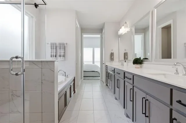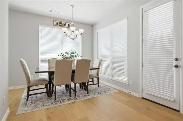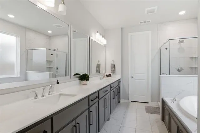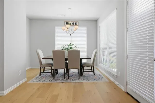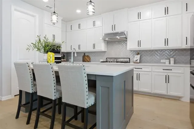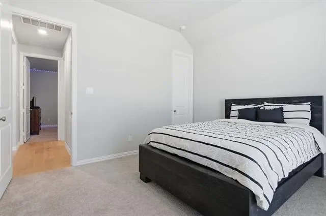 910 Winter Cherry Lane in the highly sought-after Sweetgrass community in Haslet, Texas—an exceptional 2024 built American Legend home that shows like new and is filled with stunning upgrades you simply won’t find in standard builder inventory. From the moment you step inside, you’ll notice the pristine condition and thoughtful design throughout. Gorgeous luxury vinyl plank flooring flows through the main living areas, offering both style and durability. The heart of the home is the beautifully designed kitchen featuring extended-to-the-ceiling white Shaker cabinetry, elegant quartz countertops, and abundant storage and prep space. Quartz surfaces continue into all three bathrooms, creating a cohesive and upscale feel throughout the home.