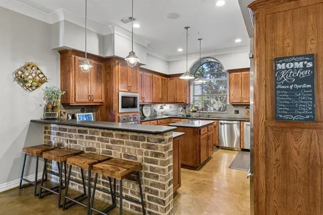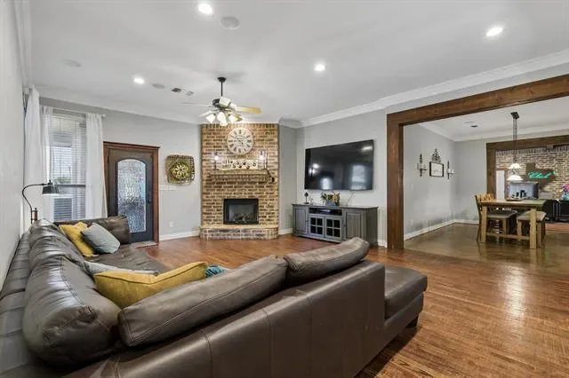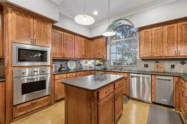 OPEN HOUSE SAT. 03-28 FROM 2-4PM. *SPRAWLING 1-ACRE ESTATE WITH 4-CAR GARAGE &' GATED PRIVACY!!*ZONED TO HIGHLY ACCLAIMED NORTHWEST ISD!!*BRAND NEW HOME GYM*Located within the highly desirable Van Zandt Farms gated community in the heart of Haslet, this exceptional 6-bedroom, 5-bath home with a game room sits on a full acre and offers a refined blend of space, style, and functionality. The open-concept layout features stained concrete flooring, rich wood accents, recessed lighting, and custom built-ins, anchored by a striking brick fireplace. The kitchen is thoughtfully designed with extensive cabinetry, a large island, walk-in pantry, and built-in appliances including a 5-burner gas cooktop and built-in refrigerator, seamlessly connecting to the main living and dining areas. A second versatile family room that could also be used as an office with exposed brick, wood beams, and barn doors adds character. The primary suite offers backyard access and a spa-inspired bath with dual vanities, a walk-in shower with dual showerheads, heated floors, and a spacious walk-in closet. Secondary bedrooms are generously sized with walk-in closets, select ensuite baths, and a split-bedroom layout, while many secondary bathrooms feature Italian marble tile and all have been beautifully updated. Newley added home gym provides an additional 342 sq ft to home – not included in original sq ft of the home. Set on a sprawling one-acre lot, the backyard is designed for both relaxation and entertaining with open green space, a covered outdoor living area, an oversized stamped concrete patio and mosquito misting system. A courtyard adds a perfect space to relax with your morning coffee. A gated drive leads to a 4-car garage with extended parking. Enjoy estate-style living with prime convenience, just minutes from shopping, dining, schools, and major roadways, all within a gated community offering privacy and security—plus a bonus of custom-fit Christmas lights for the home.