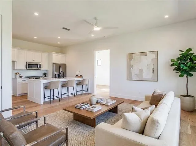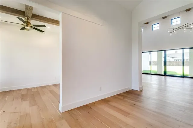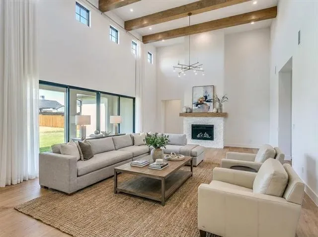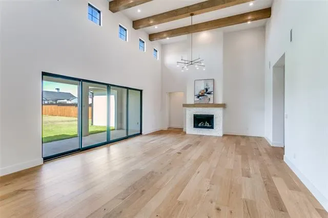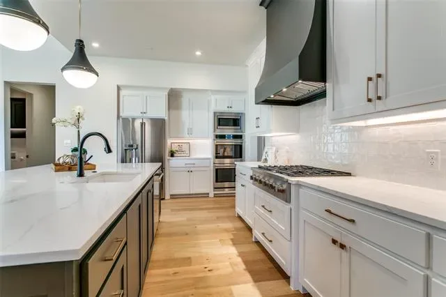 Beautiful Modern Transitional home on large lot in The Vines of Haslet built by PentaVia. Open floor plan, wide plank hardwood floors, gorgeous lighting, premium quartz countertops, a soft color palette. Gourmet kitchen with GE Cafe SS appliances, gas cooktop, center island, elegant white silage tile backsplash, and custom cabinetry. Family room features wood beamed ceiling and spectacular fireplace with floor to ceiling stone surround. Primary suite is spacious and offers a spa like bath, custom mirrors, large soaking tub and separate shower. An additional 4 bedrooms with 4.1 baths are positioned throughout the home to give amazing privacy. Spacious game room with full kitchen is located just off the kitchen area and is perfect for showing the big game or movie night with the family. Outdoor covered patio is large and offers a built in gas grill. Large yard can easily accommodate a pool with plenty of room for a game of soccer or a play set. Walking trails, a playground, a pavilion, and a catch and release pond. Completion late late July 2025.