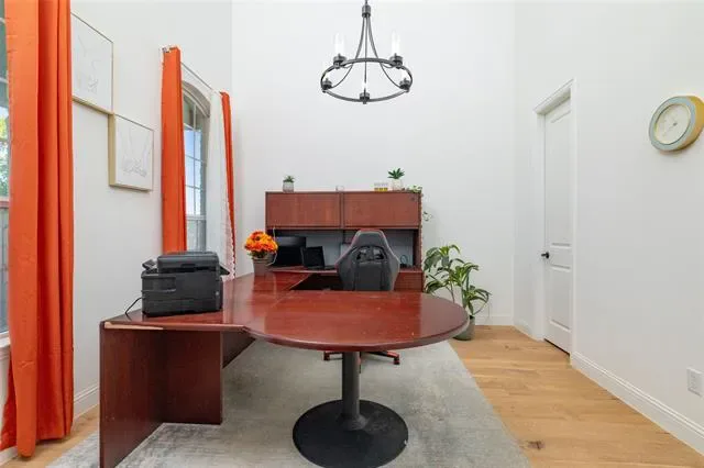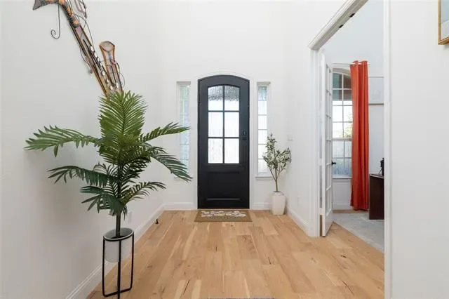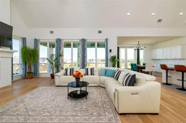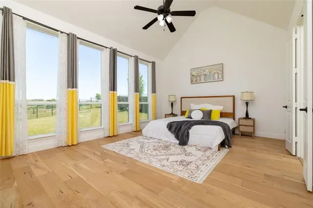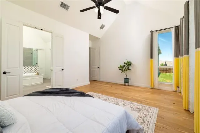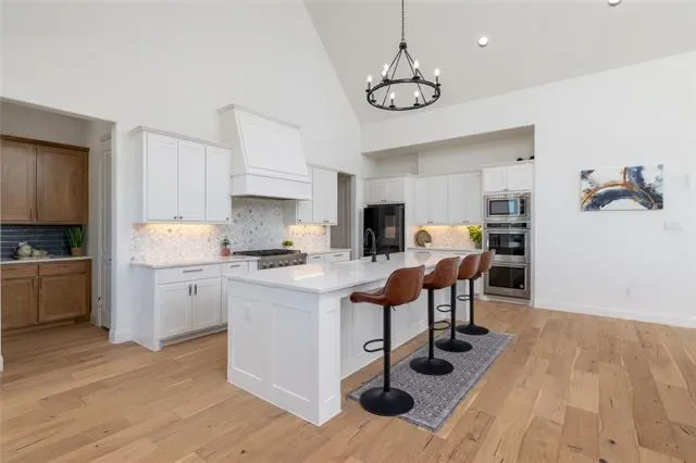 Lovely transitional-style luxury home in the highly desirable Watercress community, situated on a premium 0.41-acre corner lot with serene pond views. Offering approximately 4,875 sq ft, this 5-bedroom, 5.5-bath, 3-car garage residence blends modern elegance, functional design, and upscale finishes.The open-concept floor plan features vaulted ceilings, expansive windows, and abundant natural light, complemented by wide-plank white oak flooring throughout the main living areas. The chef’s kitchen is equipped with KitchenAid appliances, a large island, butler’s pantry, and designer lighting, seamlessly connecting to the spacious living and dining areas—ideal for entertaining and everyday living. The primary suite on the main level offers a spa-inspired bath with soaking tub, oversized walk-in shower, and dual walk-in closets. All secondary bedrooms include ensuite baths, providing privacy and comfort for family and guests. Additional features include a dedicated media room, game room, bonus living area, and oversized utility room, offering flexibility for work, play, and relaxation. Exterior highlights include the corner lot positioning, tranquil water views, and expansive outdoor space with room to customize or build a backyard oasis. A rare opportunity to own a luxury home with space, views, and premium upgrades in a prime Haslet location.