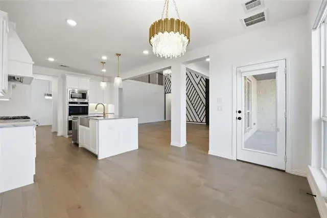 Chandelier, Eat-in Kitchen, Kitchen Island, Open Floorplan