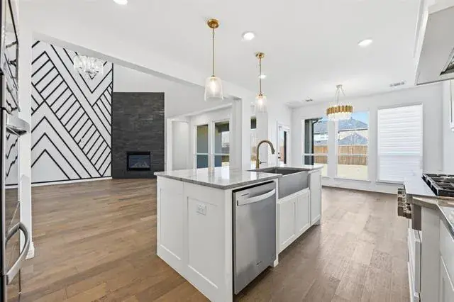 Welcome to this stunning home in the highly sought-after, amenity-rich Watercress community! Offering over 3,900 square feet of thoughtfully designed living space, this residence is filled with natural light and showcases an open-concept floor plan ideal for both everyday living and entertaining. Featuring five spacious bedrooms and four-and-a-half baths, the layout is designed with comfort and functionality in mind. A formal dining room provides an elegant setting for gatherings, while a dedicated home office with French doors offers a quiet space to work. Multiple living areas—including an upstairs loft, game room, and media room—ensure there is room for everyone to relax and unwind. The main family room impresses with soaring ceilings, a sleek corner fireplace, and a striking black-and-white panel accent wall that adds modern flair. The chef’s kitchen is the heart of the home, complete with a large island and breakfast bar, granite countertops, a butler’s pantry, and a sunlit breakfast nook. The primary suite is conveniently located on the main level, along with a secondary bedroom featuring a full bath. Upstairs, additional bedrooms offer comfort and privacy, with well-appointed baths and generous closet space. Step outside to the expansive covered patio overlooking a large, private fenced backyard—perfect for entertaining, play, or designing your future pool oasis. This exceptional home offers space, style, and versatility in one of the area’s most desirable neighborhoods. Schedule your private showing today!