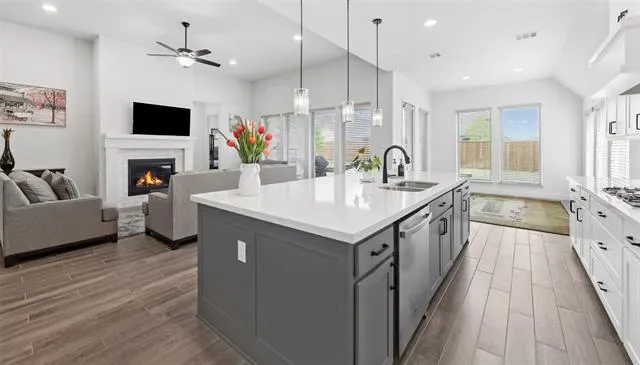 **Seller is offering up to $5,000 in concessions with an acceptable offer.** Welcome to 2194 Cloverfern Way, nestled in the highly sought-after Watercress community in Haslet. This beautifully designed 4-bedroom, 3.1-bath home offers 2,888 square feet of versatile living space with an open-concept layout and a dedicated office or flex room – ideal for working from home or creating a private retreat. The spacious living room features a cozy fireplace and flows seamlessly into the heart of the home: a stunning kitchen complete with a large island and breakfast bar, elegant quartz countertops, gas cooktop, and abundant cabinetry, making it perfect for both everyday living and entertaining.