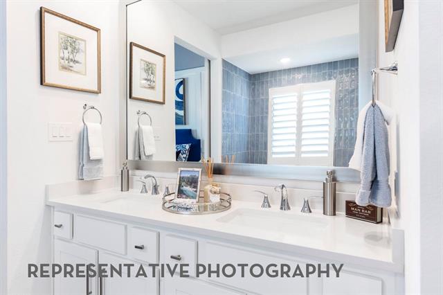 This charming two-story floor plan is designed for both comfort and functionality. The main floor features an open-concept kitchen with a central island, seamlessly connecting to the dining area and living room, which leads to a cozy patio for outdoor enjoyment. The primary suite offers a luxurious retreat with an ensuite bathroom. A secondary bedroom is located at the front of the home with a full bathroom across the hall. The rear-entry two-car garage offers ample storage and parking. Upstairs, you’ll find a versatile loft area, perfect for additional living space or a playroom, along with bedrooms three and four, which share access to a full bathroom. The open-to-below design enhances the sense of space and connection throughout the home, making it ideal for modern living.