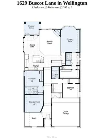 This beautiful 3-bed, 3-bath home offers an inviting and spacious layout. An open concept living room, dining and kitchen area is ideal for entertaining guests. The primary suite, tucked away at the rear of the home, provides the perfect retreat for unwinding after a long day. Enjoy privacy and natural light while you work in an elegant study at the front of the home. A 2-car garage makes coming and going easy. This house offers both comfort and style. Optional upgrades included in this home: – Enhanced outdoor living – Primary suite upgrades, including bay window – Fireplace in living room – Entertainment room