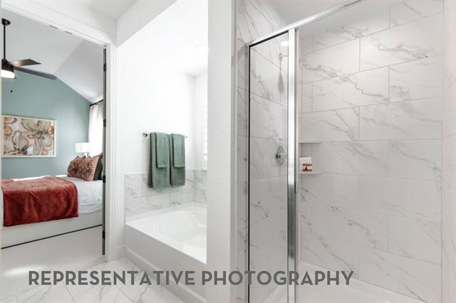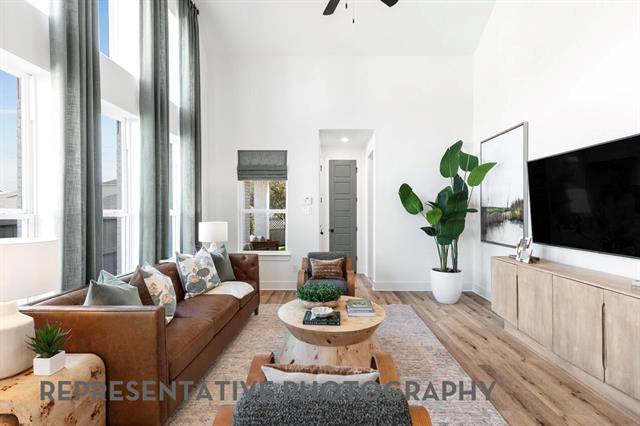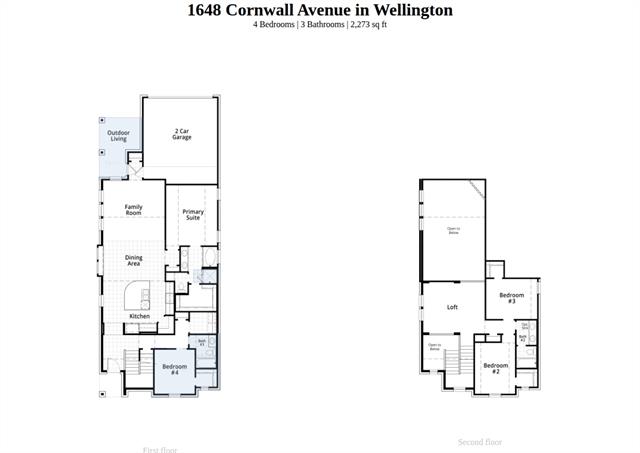 This charming two-story floor plan is designed for both comfort and functionality. The main floor features an open-concept kitchen with a central island, seamlessly connecting to the dining area and living room, which leads to a cozy patio for outdoor enjoyment. The primary suite offers a luxurious retreat with an ensuite bathroom. A secondary bedroom is located at the front of the home. A convenient full bathroom is also on this level. The rear-entry two-car garage offers ample storage and parking. Upstairs, you’ll find a versatile loft area, perfect for additional living space or a playroom, along with bedrooms three & four, which share access to a full bathroom. The open-to-below design enhances the sense of space and connection throughout the home, making it ideal for modern living.