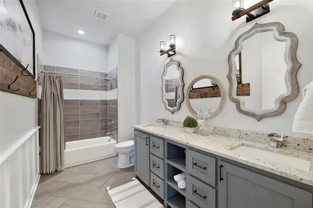 The expansive front porch offers sweeping views of downtown Fort Worth and unforgettable sunsets. A standout feature is the massive 40×70, 2800 Sq Ft insulated workshop with three garage doors, two equipped with industrial-grade openers—ideal for vehicles, equipment, or serious projects. Inside the workshop is a dedicated office, bathroom, and a climate-controlled bonus space currently used as a home gym.