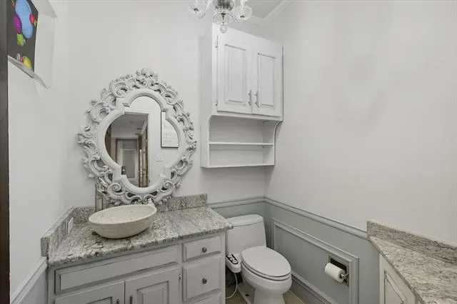 Decorative Lighting, Double Vanity, Eat-in Kitchen, Granite Counters, High Speed Internet Available, Natural Woodwork, Pantry, Wainscoting, Wet Bar