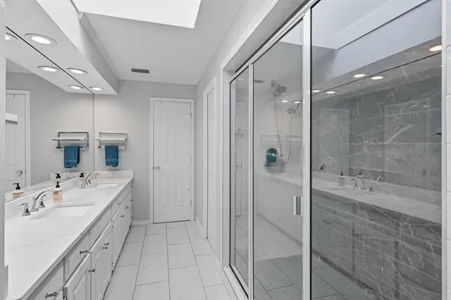 Inside, you’ll find a beautiful mix of flooring that includes handscraped hardwood, along with wainscoting, shiplap accents, and an iron front door that sets the tone for the home’s inviting style. The fireplace in the master bedroom adds a cozy touch for peaceful evenings. The spa-like ensuite features a skylight, oversized shower, and soaker tub, creating a private retreat you’ll never want to leave.