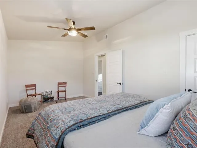 The primary suite welcomes you through stunning antique paned doors that add warmth and character, while luxury vinyl flooring runs throughout the main living areas. Fresh double-padded carpet in the secondary bedrooms adds extra comfort and a cozy feel.