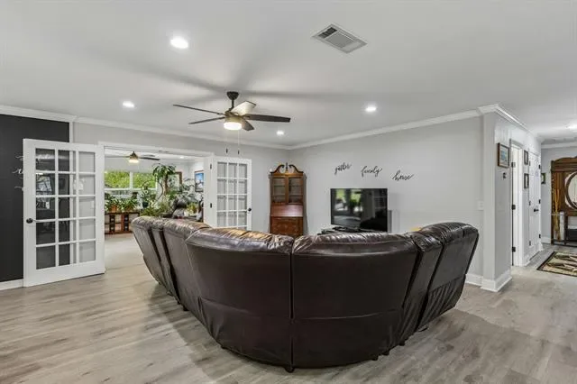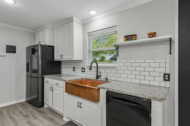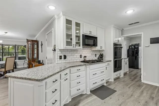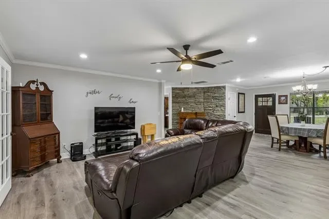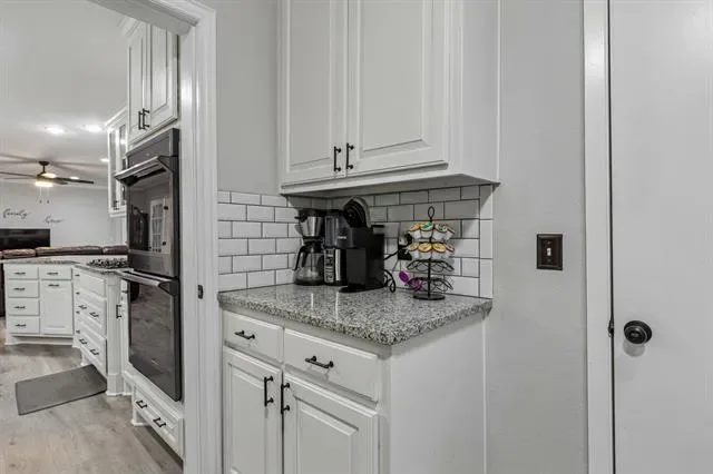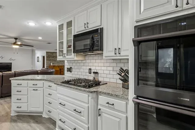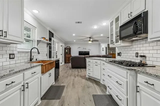 Welcome to your dream home on nearly an acre in the coveted Hudson Heights subdivision — no HOA, no compromise. This stunning 3-bedroom, 2-bath ranch house was meticulously remodeled top to bottom in 2021–2022, blending modern elegance with timeless charm. From the moment you arrive, the striking cedar accents on the exterior, inviting front porch, mature shade-giving oak trees, and sweeping U-shaped gravel driveway deliver undeniable curb appeal. Step inside to find luxury vinyl plank flooring flowing through the living areas, kitchen, and den, plush new carpet in the bedrooms, and sophisticated crown molding and 5-inch base molding throughout. The show-stopping updated kitchen features solid wood cabinets, gorgeous granite countertops, a gas cooktop, and a double oven — oversized pantry, pull-out shelves, and a spacious laundry room with a built-in coffee bar elevate daily living. The expansive living area opens through French glass doors into a serene den — the perfect flex space for a home office or private retreat. From the den, Pella glass doors lead out onto the gorgeous composite deck on the rear of the home, ideal for entertaining or unwinding. The spa-inspired master bath boasts a beautifully tiled shower with a glass door, while the guest bath features an oversized soaking tub with glass shower doors. Every bedroom includes custom closet systems, and all bathrooms were completely refreshed with new cabinets and countertops. Out back, the fully fenced yard is a gardener''s paradise featuring a greenhouse with brick floors, raised garden beds, two peach trees, and plenty of room to roam. A large storage shed with electricity and a garage door handles all your equipment, and a whole-house water filtration and salt system adds peace of mind. Located in sought-after Weatherford ISD and just minutes from I-20 — this is Parker County living at its finest.