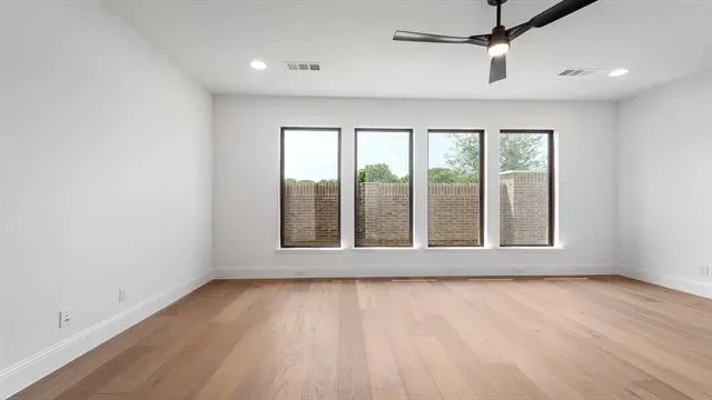 READY FOR MOVE-IN!Home office with French doors at the entry. Hardwood floors throughout living areas. Formal dining room. Kitchen features a large island with built-in seating, double wall oven, 6-burner gas range top, lots of counter space and a large walk-in pantry. Open family room with a wood mantel fireplace and a sliding glass door. Primary suite with a wall of windows. Double doors lead to primary bath with separate vanities, freestanding tub, separate glass-enclosed shower and two large walk-in closets. Guest suite with a full bath and walk-in closet. Covered backyard patio. Mud room and powder room off entry leads to the three-car garage.