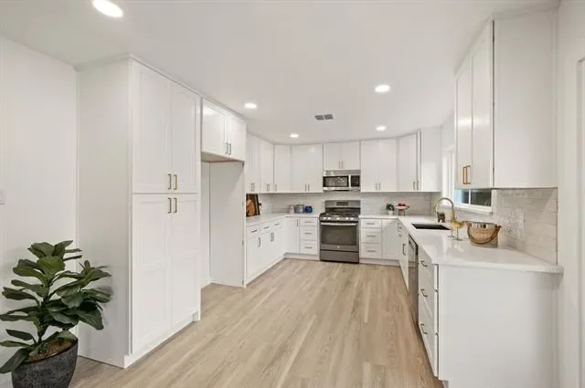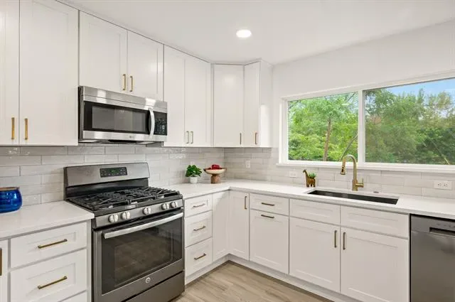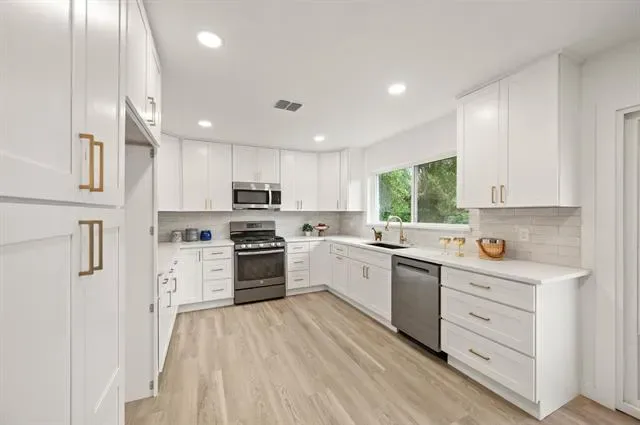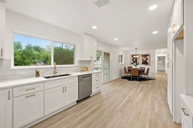 Multiple offers received, offer deadline is 8pm on April 26th. New south Hurst SHOWSTOPPER! Completely redone gem from top to bottom comes with everything – new roof, huge backyard, new cabinets and quartz countertops, dual vanities in both bathrooms, and NO CARPET. Thoughtfully reimagined with entry mud bench, hallway laundry, walk-in master shower with handheld wand, and so much more! Easy access to the entire metroplex off 121, short drive to DFW airport, the new Bedford HEB and Glade Parks, and many nearby parks. DO NOT MISS THIS ONE! New EVERYTHING- new roof, new PVC plumbing, new HVAC and ductwork, new tankless water heater, new electrical panel, new windows
