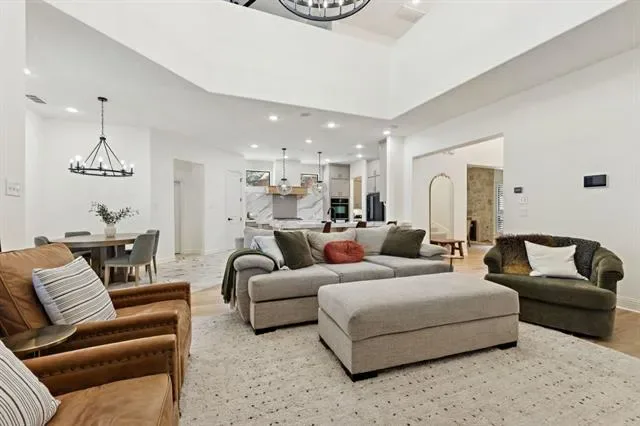 Welcome to 2157 Lookout Court, a beautifully updated magazine-worthy home tucked away in a peaceful cul-de-sac. Prime location in Birdville ISD and ideally situated close to dining, shopping, and entertainment. This open and airy home offers more than 4000 square feet that epitomizes a welcoming, cozy and elegant home. With three generous living areas—including a theater room—two dining spaces, and vaulted ceilings throughout both floors, this home is perfect for both everyday comfort and entertaining. The home contains custom stone fireplaces, a multi-room Heos audio system, Pottery Barn fixtures, engineered hardwood floors, and a stunning kitchen equipped with custom cabinetry and sleek countertops on oversized islands that opens seamlessly to the downstairs living area. Each of the four bedrooms includes its own en-suite bathroom, providing privacy and convenience for family and guests. The primary suite is a true retreat, complete with a luxurious bath and walk-in closet. Step outside to enjoy your private backyard oasis complete with a sparkling resort style pool and spa ideal for relaxing, hosting gatherings, or watch the sunset over the local park from either the downstairs or upstairs patio. This home has been fully renovated with designer lighting, fresh paint, updated flooring, and stylish finishes throughout. Located just minutes from shopping, dining, and major highways, this move-in-ready home is a rare gem in a prime location. Don’t miss your chance—schedule your showing today!
