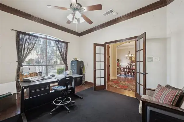 Welcome to 2221 Farrington Lane, a stunning residence nestled in Chisholm Trail Estates, in the sought after Birdville ISD. This beautiful, peaceful and family-friendly home features 5 bdrms, with 2 bdrms downstairs and 4 full baths, making it perfect for families or those seeking extra space. As you enter, you are greeted by a warm and inviting atmosphere~ high ceilings~neutral colors~an open floor plan great for entertaining. You’ll find beautiful wood floors throughout entry way, study and dining room~cozy fireplace~spacious kitchen with island~granite countertops~double oven~butler’s pantry~mud room~3 car garage~private covered patio~located conveniently close to local schools, shopping and access to freeways. Hurry and come see it for yourself. You will love this home!