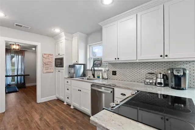 Beautifully maintained and extensively updated 3-bedroom, 2-bath home on a spacious corner lot with an oversized two-car garage and private backyard enclosed by a white PVC fence. Approximately 2,200 sq ft with an enclosed sunroom connected to HVAC, offering flexible living space for a second living area, office, or hobby room. Major updates include new HVAC (2024), new roof (2025), upgraded heat-rated double-pane windows, remodeled bathrooms, updated appliances, LVT flooring throughout, tile in bathrooms, and copper pigtailed wiring. Interior improvements include scraped popcorn ceilings, updated lighting with recessed cans, ceiling fans in all bedrooms, and removal of outdated paneling and fixtures. Exterior upgrades include an extended patio and three french drains for improved drainage. Located in Birdville ISD with convenient access to nearby parks, shopping, dining, entertainment, and major highways for easy commuting throughout the DFW Metroplex.