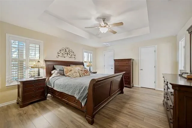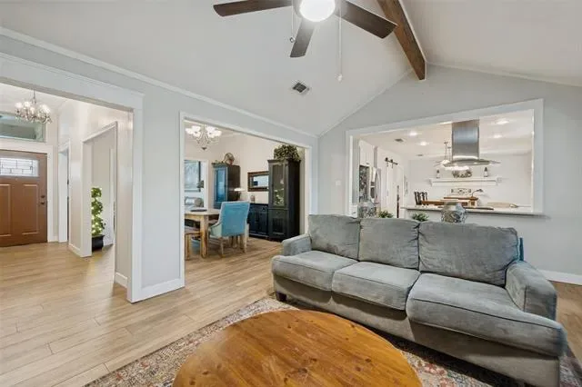 This jewel of a home is not to be missed. It is beautifully updated, with 4 bedrooms, 2 baths, and 2 living areas. This perfect single story home is located in the pocket and highly sought after subdivision of Haven Addition and has the added bonus of being in Grapevine-Colleyville ISD. The lovely canopy of trees give the home a warm welcome as you approach. The entry greets with open flowing rooms, allowing natural light to flood in through the plantation shutters. The main living areas have beautiful hardwood look floors, a wood burning fireplace, decorative ceiling details, sky light, vaulted ceilings and decorative lighting. The kitchen invites guest to come in and enjoy the beauty of the marble counters, stainless appliances, gorgeous tile back splash, large kitchen island and of views of the backyard. The spacious and tranquil primary suit is located at the back of the house with two large walk in closets, giving it a retreat feel. The updated primary bath has ceramic tile floor, garden tub, and separate vanities. The secondary rooms are spacious with large closets. The large backyard lends itself for entertaining and soothing evenings of relaxation. The city park is just a couple of short blocks, perfect place for kids to play or enjoy a picnic. Conveniently located to great shopping, restaurants, major highways and DFW Airport. Don’t wait to see this jewel, it will go fast and is a must see.