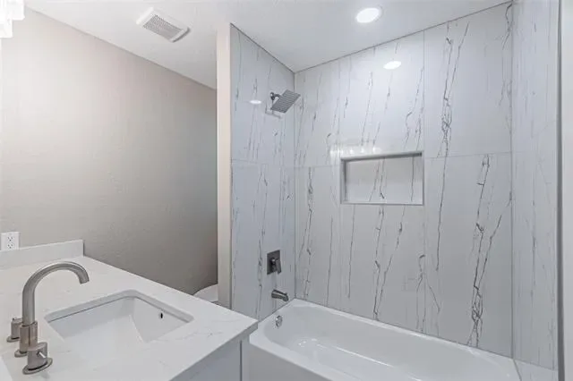 Rare Find! All CITY PERMIT passed! This charming 4 bed 3 bath home is nestled on almost quarter acre lot with extended driveway, sideway garage, 2 storage buildings &' large parking area for your RV or boat. This home has been completely renovated with all the modern updates you would expect in a new home. Great curb appeal with all New double-pane windows for energy efficiency, Two New HVAC system, New Insulation in Attic, New Water Heater, New Electric Panel, and New Roof. All work (Plumbing, Electric, HVAC systems, Insulation, Renovation) has been inspected &' passed by city of Hurst. Through new elegant front door, you''re welcomed by a spacious open floorplan perfect for both family living &' entertaining. The well-appointed gourmet kitchen, complete with a spacious premium quartz island, all solid wood shaker cabinets with slow close, glass panel cabinets on top, stainless-steel appliances, while recessed lighting provides a warm ambiance. The eat-in kitchen area is perfect for family meals and gatherings. The thoughtful layout provides ample space for everyone to relax &' thrive. The primary suite offers separate closets, private ensuite bath, double vanity, &' a walk-in shower. Separate-in-law suite offers a full bathroom with large vanity. Two separate bedrooms are located upstairs, perfect for kids or guests. Other modern upgrades include Luxury waterproof LVP flooring throughout with no carpet, All new LED lights, all remote-controlled ceiling fans, &' fresh paint throughout. Step out to enjoy your air-conditioned sunroom. Prepare to be captivated by expansive backyard – a true outdoor oasis! Imagine summer barbecues, lively playdates, or simply relaxing in your private green space. Perfectly positioned between Fort Worth and Dallas, this beautifully updated property offers unmatched convenience and comfort. Located only 8 miles from DFW International Airport, it’s ideal for commuters and travelers alike. Bring your buyers cause this one won’t last long!