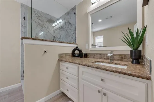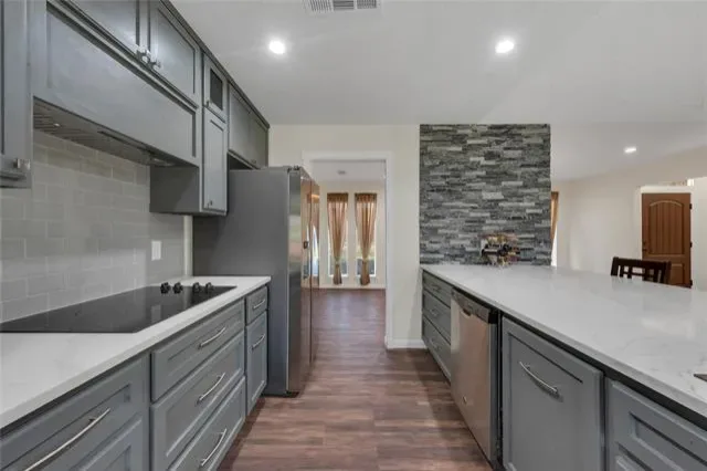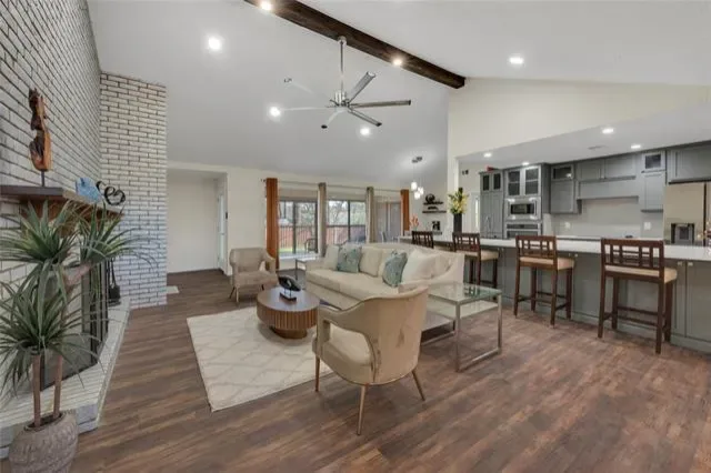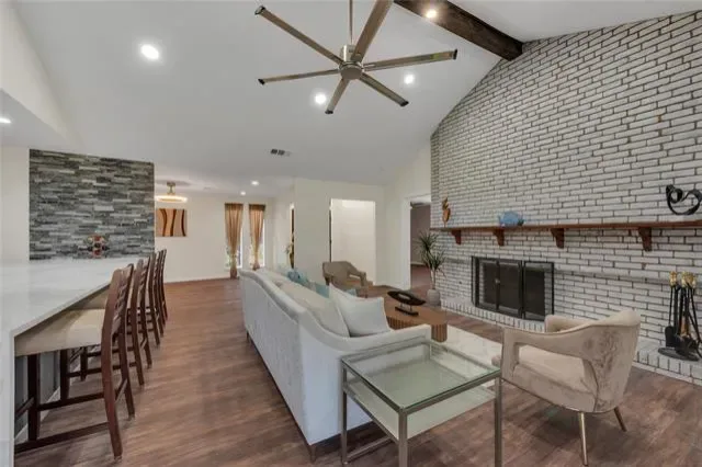 PRICE IMPROVED!!! Charming and beautifully remodeled mid-century ranch in the heart of Hurst. This move-in ready home is made for entertaining with an open floor plan that’s light-filled and flows seamlessly from room to room. Stylish open kitchen with a HUGE island that can seat up to 6, modern cabinetry and sleek quartz countertops. Living room with vaulted beam ceiling and gorgeous wood-burning fireplace.The home blends classic charm with today’s sought after updates for comfortable, everyday living. Enjoy 3 spacious split bedrooms, 2 updated baths, and a generous size backyard with mature trees perfect for relaxing. Bonus features includes a large sunroom that’s perfect for plant lovers or just relaxing with morning joe sips. And for the car buffs, the 2 garage newly coated with Polyaspartic concrete flake coating that makes oil spills and messes an easy clean-up. This beautiful home is almost equal commute to both downtown Fort Worth and Dallas, close to everything, and within walking distance to Bell High School. This home is a must see!