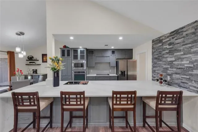 Cable TV Available, Cathedral Ceiling(s), Chandelier, Decorative Lighting, Dry Bar, Eat-in Kitchen, Kitchen Island, Open Floorplan, Vaulted Ceiling(s)