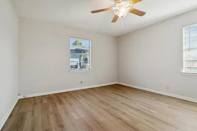 Step inside to find a cozy secluded den, flex space perfect for a work from home office or media room on the way to the main, multi functional living space featuring appealing luxury vinyl wood flooring that flows throughout. The interior has been refreshed with bright, contemporary paint and updated light fixtures, creating a vibrant and welcoming atmosphere.