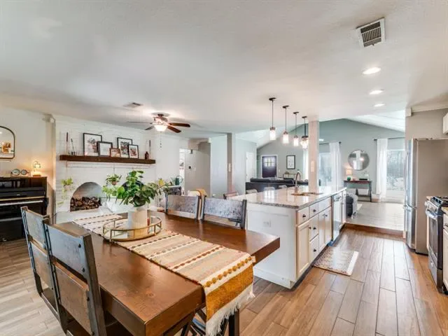 Beautifully renovated home full of character and style! Every detail hits the mark—from the soaring vaulted ceiling with a statement wood beam to the bright, open kitchen featuring a large island perfect for gathering. The home also offers a warm, inviting fireplace, tastefully updated bathrooms, and a spacious landscaped lot. A standout feature is the upgraded shed with electricity and AC unit historically has been set up as a workout space but easily adaptable as a home office, man cave, or she shed. . Designed with entertaining in mind, the layout flows effortlessly for both indoor and outdoor living. Situated in a desirable neighborhood known for its mature trees, you’re just minutes from local dining and Smith Barfield Park with convenient access to major highways, commuting is a breeze—plus you’re less than 15 miles from DFW Airport and under 2 miles from all the shopping, dining, and entertainment at Northeast Mall. Upgrades include roof in 2022, Heat and Air in 2025, new electric panel and pigtails throughout 2024, Dishwasher 2025