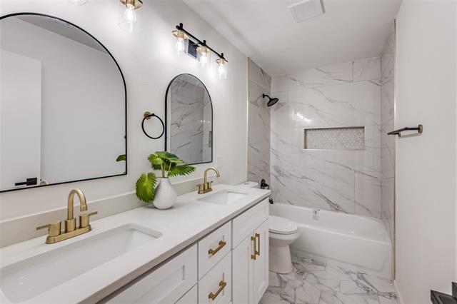 Beautifully updated Hurst home blending classic charm with modern upgrades. Inside, you’ll find brand-new oak hardwood floors, upgraded trim and millwork, custom windowsills, and new carpet in the bedrooms. The kitchen shines with a quartz waterfall island, real marble backsplash, solid wood soft-close cabinets, and stainless steel appliances-including a refrigerator, stove, microwave, and dishwasher. A stackable washer and dryer are also included for your convenience. Both bathrooms have been fully renovated with new tile, vanities, and fixtures. The primary bath features a frameless glass shower, and the primary bedroom offers a spacious walk-in closet. Additional highlights include a large backyard with an 8-foot privacy fence, cedar planter boxes, and mature oak trees. The foundation work has been completed and comes with a transferable warranty. Conveniently located near shopping, dining, schools, and with easy access to North East Mall, this move-in-ready home, located in an established neighborhood, offers timeless style and lasting value. Seller willing to install brand new windows with an acceptable offer.