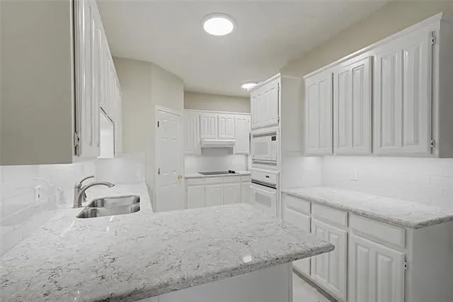 The kitchen is truly the heart of this home, showcasing sleek quartz countertops, classic subway tile backsplash, and a convenient breakfast bar. Thoughtful updates include a spacious walk-in pantry, granite-style countertops, and modern finishes that make meal preparation a pleasure. The adjacent formal dining room offers an ideal space for gathering with family and friends.