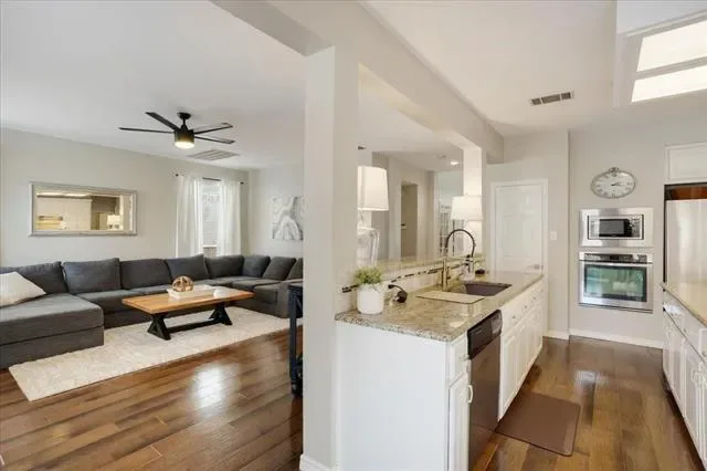An exceptional opportunity in the prestigious Hidden Lakes – Ashbrook Addition. Tucked away at the end of a quiet cul-de-sac, this meticulously designed 4-bedroom, 3.5-bath residence offers an ideal blend of sophistication, comfort, and functionality. The main level is thoughtfully curated for both everyday living and elegant entertaining, featuring multiple expansive living areas, a refined private study with custom built-ins, and a chef-inspired gourmet kitchen that seamlessly opens to a stunning family room anchored by a statement fireplace. Upstairs, a versatile flex space provides the perfect setting for a study lounge, media area, or additional workspace. Recently installed plush carpeting enhances the upper level with fresh, modern appeal. Step outside into your private backyard retreat—an entertainer’s dream—complete with a sparkling resort-style pool and ample space for outdoor living, recreation, or future enhancements. Located within the highly acclaimed Keller ISD, this home offers access to premier amenities including scenic walking trails, community pools, and nearby golf courses. Just minutes from upscale shopping, dining, and major thoroughfares including Keller Parkway and Loop 820, this residence delivers both convenience and an elevated lifestyle.