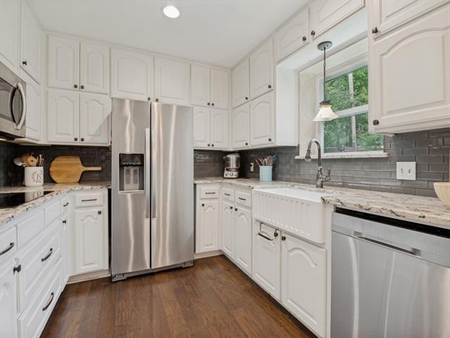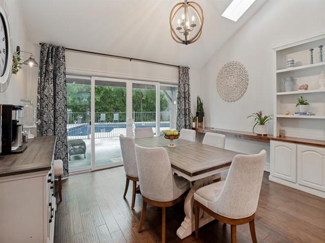Beautiful one story home nestled in mature trees on .9 acre lot in sought after Bear Creek Estates. This home backs up to Bear Creek Park and walking distance to year round activities. The living room’s full glass doors open to the covered patio overlooking large pool and outdoor living area. Kitchen features double ovens granite countertops, farm sink, built in china cabinet. Master has sitting area and updated master ensuite with quartz countertops, walk in shower with glass doors, standalone tub, double vanities, large walk in closet. 4th bedroom makes a great office space as well with full adjacent bathroom. Dining room features built in shelves convenient for entertaining. 19’x28′ WORKSHOP with 1 inch sprayed insulation and is climate controlled by a mini split and has 120V and 220V electrical service. Spacious circular driveway plenty room for parking. Home just minutes away from schools, shopping, restaurants, parks, and trails for biking and running!