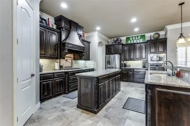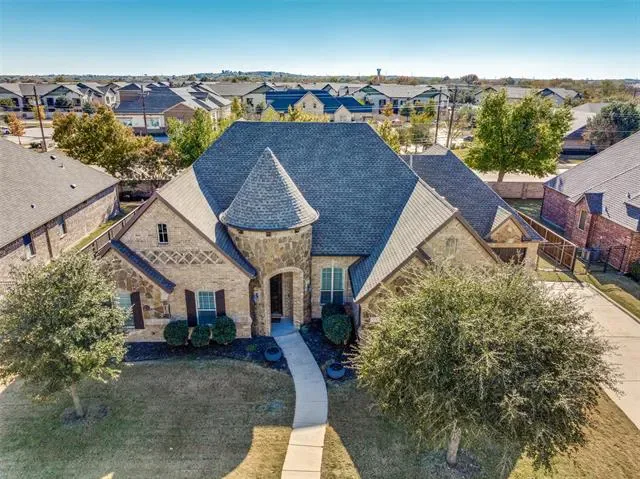 Welcome to this stunning single-story custom home, featuring timeless curb appeal with its stone façade, turret-style entry, and elegant architectural details. Offering 3,500 sq ft of well-designed living space, this home delivers the perfect blend of charm, comfort, and functionality. Inside, you’ll find 4 spacious bedrooms, 3 full bathrooms, a dedicated home office, and a large bonus room that can serve as a game room, second living area, media room, or even a 5th bedroom if needed. The open layout brings in plenty of natural light and creates an inviting flow for both everyday living and entertaining. Built in 2014, this property provides modern features while maintaining classic European character. As a single-story, it offers effortless accessibility and convenience perfect for families or anyone wanting to avoid stairs. Located close to the schools, this home sits in a highly desirable neighborhood with easy access to nearby amenities, making it a rare find that checks all the boxes.