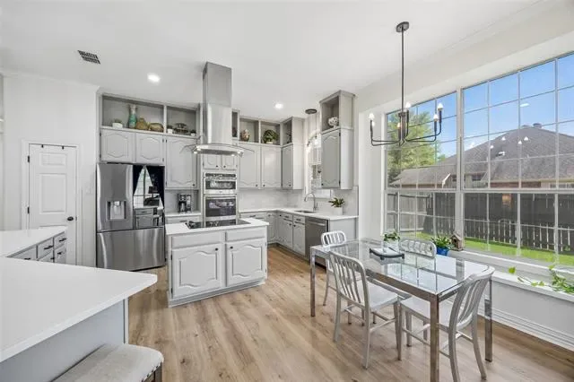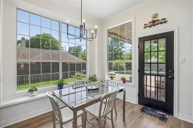 Gorgeous one-story brick ranch-style home set along a beautiful tree-lined street in the distinctive Brooks community, where pride of ownership shines and there is no HOA. This inviting residence blends comfort, style, and functionality, all enhanced by abundant natural light throughout. The heart of the home is the beautifully updated kitchen, featuring an island cooktop, wraparound bar seating, and generous workspace—perfect for both everyday living and entertaining. The open-concept family room is framed by a wall of windows overlooking the backyard, filling the space with light while offering a serene view of the sparkling pool. A floor-to-ceiling brick fireplace serves as a striking focal point, adding warmth and character. The thoughtfully designed split-bedroom layout offers added privacy, with the primary suite situated in its own wing. The en-suite bath has been tastefully updated with modern finishes, creating a relaxing retreat. Secondary bedrooms are well-sized and versatile. Enjoy the backyard oasis, where the pool and well-maintained patio provide an ideal setting for gatherings or quiet relaxation. Additional highlights include a three-car garage with durable epoxy flooring, an extended driveway for additional parking, and a convenient ante-room with plumbing for a sink, offering flexibility for a variety of uses. Located in a peaceful, established neighborhood with convenient access to shopping, dining, and major routes, this home offers both tranquility and accessibility in a truly special setting. 3D tour available online.
