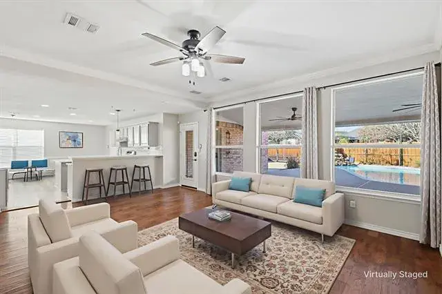 Experience refined living in this beautifully designed 4-bedroom, 2.5-bath home with a pool, ideally located in Keller, TX. Featuring a versatile floor plan, this residence offers generous living space, quality upgrades, and a 3-car garage, all complemented by inviting curb appeal. The interior showcases high ceilings and abundant natural light throughout. The main living area is warm and welcoming, ideal for everyday living or entertaining. The open-concept kitchen includes quartz countertops, stainless steel appliances, a large island, and a walk-in pantry, flowing seamlessly into the dining area for gatherings of any size.
