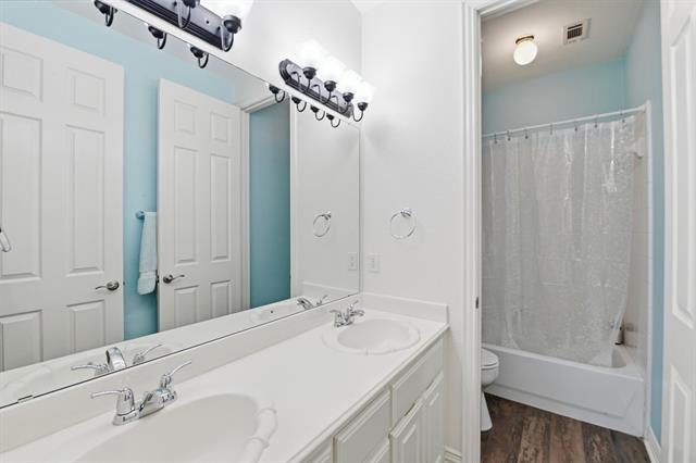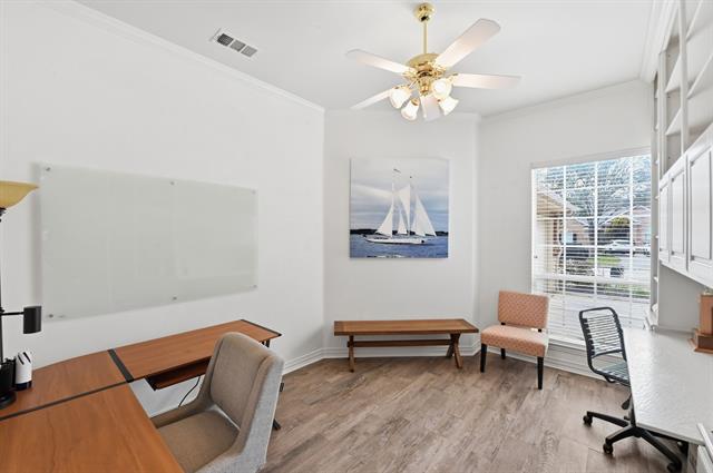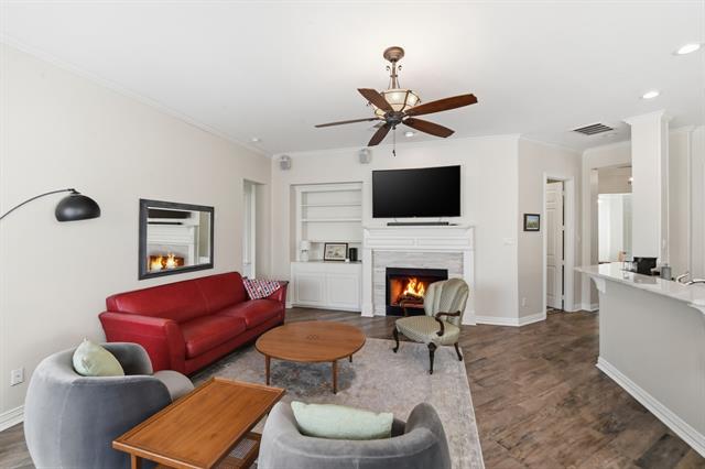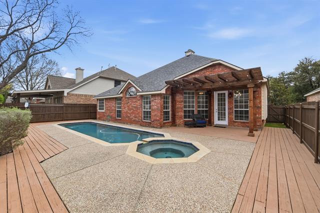 Ideally located on a private cul-de-sac in The Preserve at Hidden Lakes, this meticulously-maintained home presents a traditional stone and decorative brick facade and a charming covered front porch. The functional ONE-STORY floor plan offers 2281 square feet of living and includes three spacious bedrooms, a dedicated study with French doors and custom built-ins, an elegant dining room, an oversized family room anchored by a traditional fireplace with glass-tile surround, a gourmet kitchen complete with lovely marble counters, an undermount sink, stainless steel appliances, subway tile backsplash, gas cook-top, breakfast bar center island and charming breakfast nook; an entertaining game room area, utility room with cabinetry and shelves, and an attached two-car garage. Quality abounds throughout with gracious windows, upgraded vinyl plank flooring, ornate trim and molding, fresh paint, many new modern fixtures, new hardware, custom built-ins, replaced water heater, upgraded carpet, new paint on front door and fence, and a plethora of storage. The primary suite, located away from the traffic areas of the home, boasts a sitting area before windows, a spa-inspired bathroom and a large closet area. Alfresco relaxation comes easy in this beautiful backyard oasis. This outdoor area is highlighted by a custom pergola, a sparkling pool and attached spa – which can be controlled by phone app. This easy to maintain area also includes a replaced pool pump, surface, tile, coping, heater and control panel, a freshly painted eight-foot fence and an expansive deck area. Feeding the award-winning Keller ISD, this Hidden Lake’s home is perfectly located near upscale shopping, local eateries and DFW International Airport.