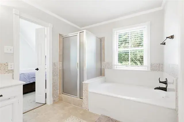 The open-concept kitchen boasts abundant cabinetry, generous counter space, GAS cooktop, and elegant wood flooring. Upstairs, the large primary suite impresses with a cathedral ceiling, walk-in closet, and an en-suite bath with dual sinks, a garden tub, and a separate shower. You’ll also discover a hidden closet or safe room, plus a partially finished attic that can serve as extra storage or be completed for additional flex space.