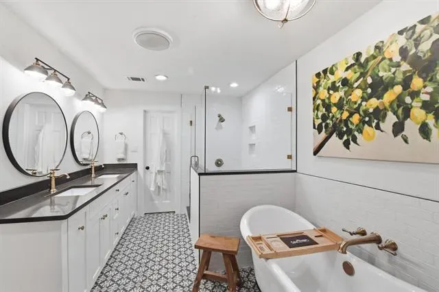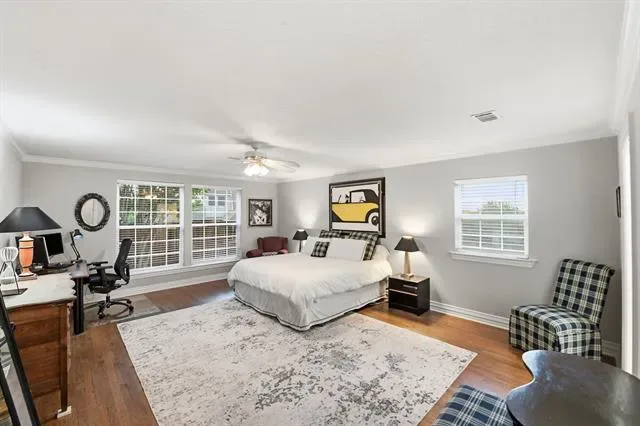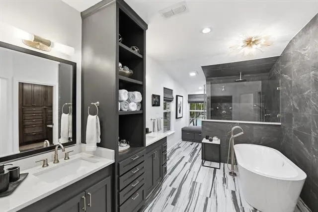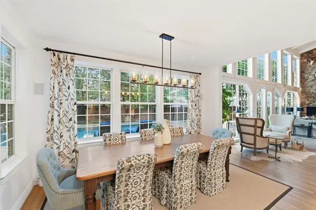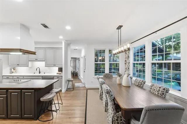 Come see this lovely home offering the perfect blend of rustic charm with all the modern touches. Nestled on a premier .84-acre corner lot in the sought-after Hudnall Farm Addition of Keller, this ONE-OF-A-KIND property presents a beautiful facade highlighted by a charming covered porch overlooking a canopy of mature trees. The gracious interior boasts 5174 square feet of living with a floor plan that is both functional and flexible. The two-story floor plan is showcased by five bedrooms, including two primary suites, four full and one half bathrooms, a formal dining room, an oversized family area anchored by an impressive stone fireplace and a breathtaking wall of windows, a dedicated study, a fully remodeled kitchen including custom cabinetry, lovely quartz counters, a leathered granite island, newer appliances, a double oven and a breakfast area; utility room with additional cabinetry and a three-car garage. The second-level primary suite hosts a romantic stone fireplace, a sitting area before windows, and a luxurious bathroom including a large closet area with TV viewing area. Key amenities of this home include gracious entertaining spaces, soaring windows, impressive nailed-down, custom ceiling treatments, refinished hardwood flooring, remodeled bathrooms, two replaced HVAC units, upgraded light fixtures, custom built-ins, a replaced roof 2021, three updated water heaters, and a plethora of storage. Ideal for alfresco relaxation, the picture-perfect backyard oasis presents professional night-scape lighting, a sparkling Claffey diving pool with a Pebble Tec finish and tanning ledge, a gas fire pit and a large covered cedar pavilion complete with a custom built-in grill, bar, and outdoor living area. This exclusive property feeds the award-winning Keller ISD and is perfectly located a short commute to DFW International Airport, local eateries and upscale shopping.