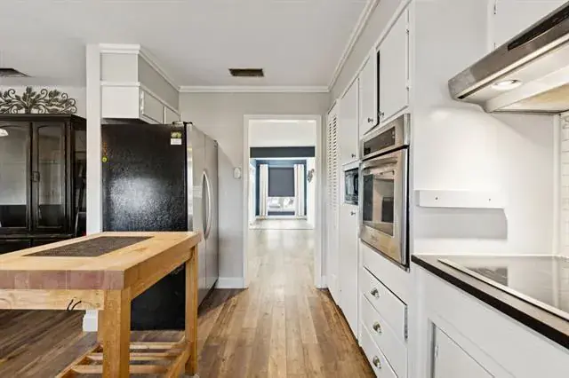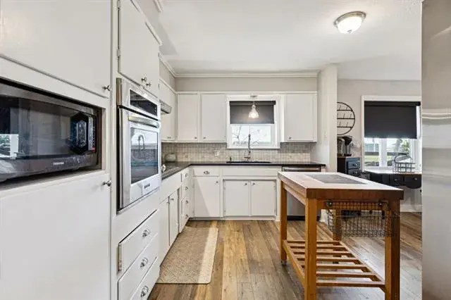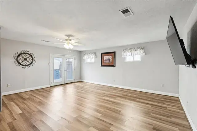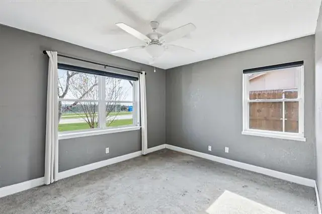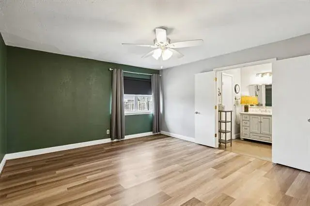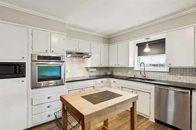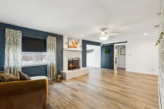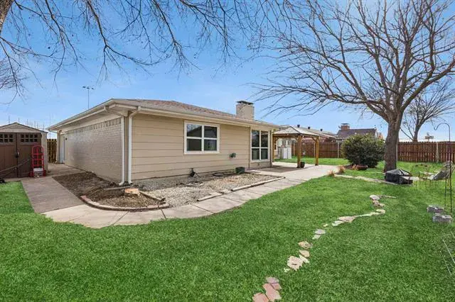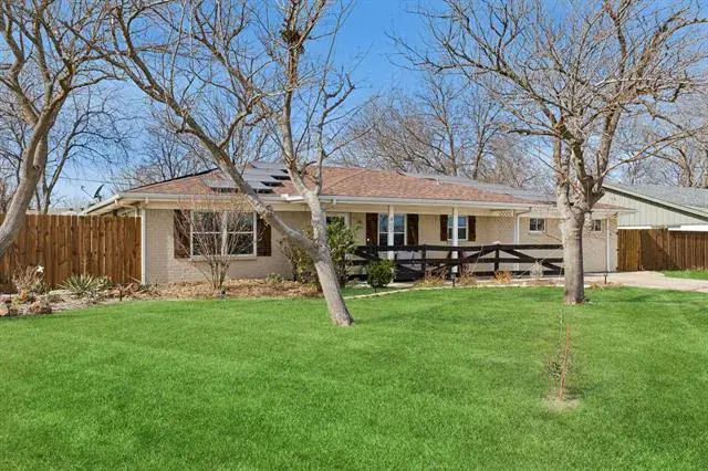 Nestled among mature trees in the heart of Keller, this beautifully renovated single-story charmer is truly move-in ready and packed with upgrades buyers will love. A spacious front porch welcomes you inside to the dining and kitchen area then leads you to bedrooms on each side of the home with the lovely living room at the center of attention with brand new custom shelving. Featuring luxury plank flooring, a stylish white brick fireplace, neutral tones, and updated baseboards. The inviting dining area and drop-down chandelier seamlessly connect to the super cute kitchen, complete with stainless steel appliances, electric cooktop, white cabinetry, black honed granite countertops, and a marble backsplash. The spacious primary suite offers a serene retreat with double doors leading to a fully updated ensuite boasting a large single vanity, soft-close cabinetry, and a separate subway-tiled shower. Two generously sized guest bedrooms share a refreshed bathroom with custom finishes that match the home’s elevated style. A large game room provides the perfect spot for a pool table, media setup, or hobby space. Additional highlights include solar panels with 2 batteries so you can live off-grid, low-E double-pane windows, a 5-ton AC unit, and a foundation repair with lifetime warranty for added peace of mind. The private backyard oasis features lush trees, an expansive patio, and a 16×12 storage building, perfect for outdoor entertaining or extra storage. All this just steps away from award-winning Keller schools, the local library, sports fields, tennis courts, and vibrant Old Town Keller.