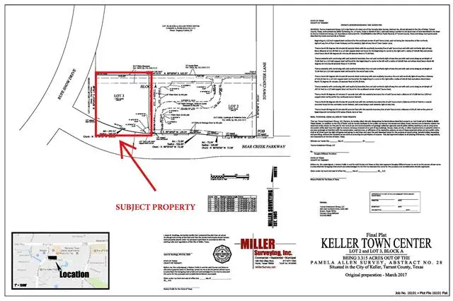 ONE of the LAST lots available for development in the Town Center over-lay of Keller. Prime commercial, restaurant, or hospitality site located in front of the brand new Hampton Inn & Suites with GREAT visibility along Rufe Snow Drive and the HARD corner of Bear Creek Parkway. Part of Keller Town Center and across from Movie House & Eatery with north of 30,000 vehicles per day visibility. .Average household income of $160k +, and total population above 35,000 within 2 miles. One of the LAST top-shelf buildable commercial lots within the Keller Town Center designation.