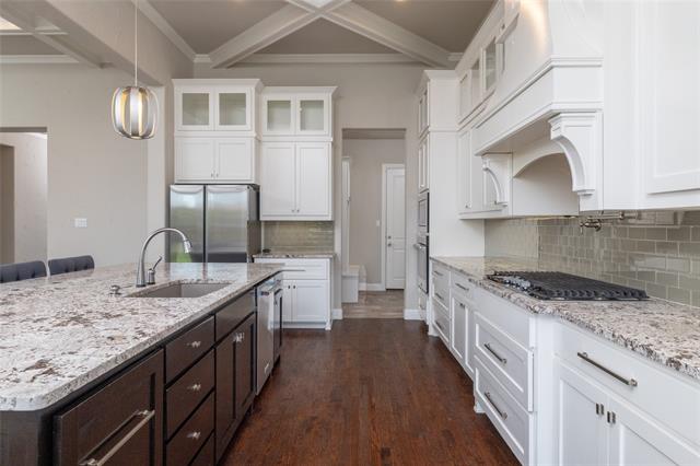 Hard to find beautiful one story cul-de-sac home in North Keller sitting on just over half an acre located in Marshall Ridge is ready to be your new home just in time for the holidays. As you pull up to the curb you instantly feel the warm and inviting vibes pulling you in. Once inside the front door your eyes are pulled in so many directions, the extensive custom trim work, the art niches, the large living room with the massive glass sliding doors. And then you see the amazing kitchen with cabinets that reach towards the ceiling and the massive island you always wanted, what a beautiful kitchen. The perfect setting for all of your holiday gatherings from now on. And don’t miss the media room behind the hidden door, super cool. So much to love about this home. Close to shopping and dining and zoned to Keller High.