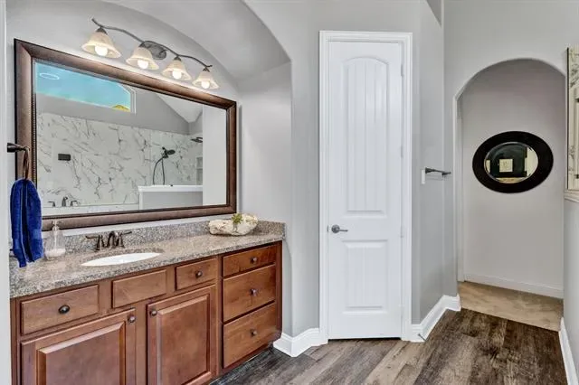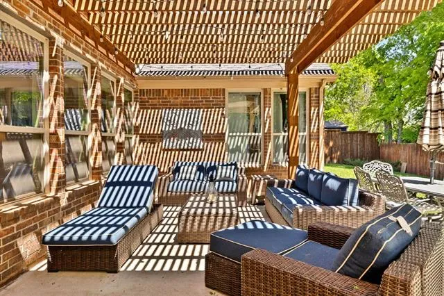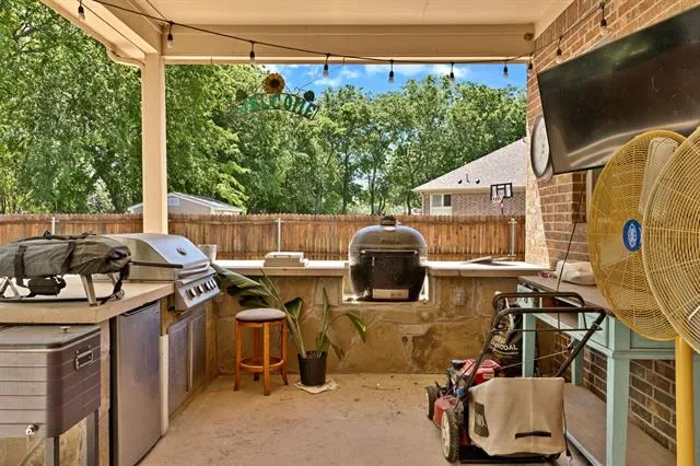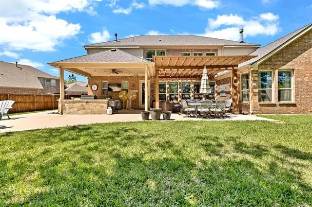 Gorgeous executive home in Marshall Ridge. Thoughtful floor plan, made for entertaining, features spacious kitchen overlooking large living area, dedicated office makes working from home a breeze and private primary suite and beautifully updated bath with separate vanities, huge shower and stand alone tub. Upstairs you’ll find 3 secondary bedrooms with 2 full baths, a large loft area and separate game room.Three car garage provides plenty of space for vehicles, toys or a workshop. Gather around the gas powered, stone fire pit or under the pergol and enjoy the outdoor kitchen with built in grill and Primo XL ceramic smoker. Marshall Ridge features an amenity center, community pools, a gym, meeting room and playground. Ridgeview Elementary is in the neighborhood. Easy access to Hwy 377, I35, 170, 114 and DFW airport. Shopping and dining are close by