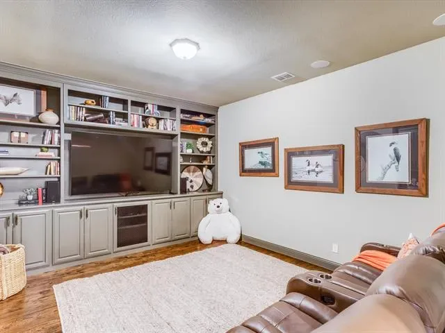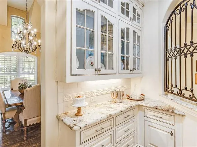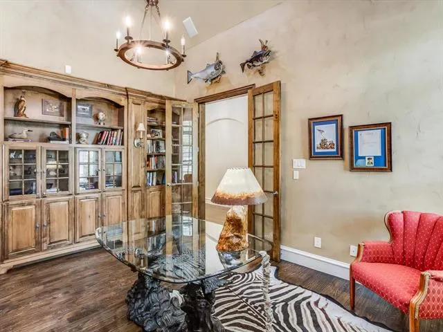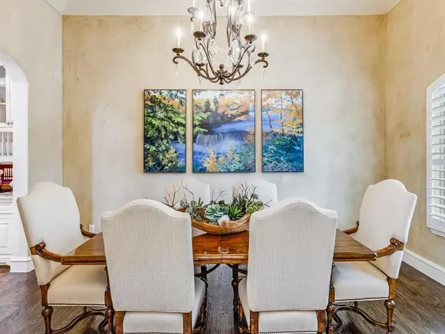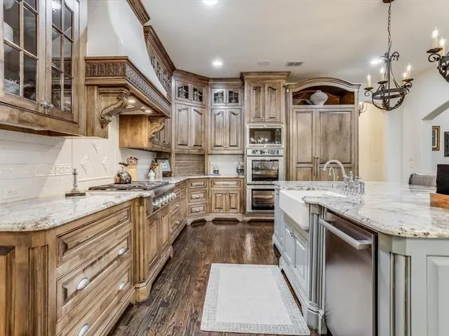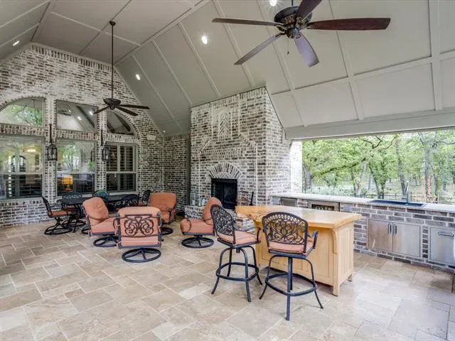 Welcome to a rare, park like, single story estate in the heart of Keller offering luxury, privacy, and functionality on over one acre with NO HOA. Surrounded by towering oak trees and extensive landscaping, this property delivers unmatched serenity just minutes from the city. Inside, the immaculate interior showcases hand-scraped hardwood floors, custom cabinetry, and designer finishes throughout. The chef’s kitchen features a Thermador 6-burner gas stove, double ovens, high end appliances, and seamless flow for entertaining. Enjoy a fully integrated lifestyle with whole home sound, security system, and a dedicated media room with 85 inch screen. Designed for both comfort and efficiency, the property includes a garage elevator for attic storage, epoxy floors in garage and shop, and a 24×20 insulated shop with HVAC. Major upgrades include a whole home generator, 700 foot private water well with new control system (2025), hail-resistant roof (2021), new HVAC (2023), tankless water heater with recirculating system (2025), and more. Outdoor living is exceptional with a fully equipped kitchen featuring wood and gas grill, beverage fridge, ice maker, fireplace, and mosquito misting system. Complete irrigation system keeps the grounds lush year-round. This is a rare opportunity to own a meticulously maintained, fully loaded estate. Chicken coop with chickens, if desired. Three gas fireplaces, two inside and one outside. Primary suite is extensive with grand entrance that leads to huge primary bathroom with dual vanities, freestanding soaking tub, walk in shower, private vanity, and large closet with organization one could only dream of!