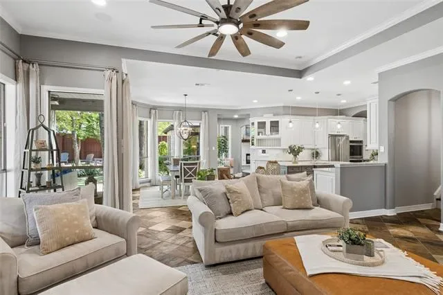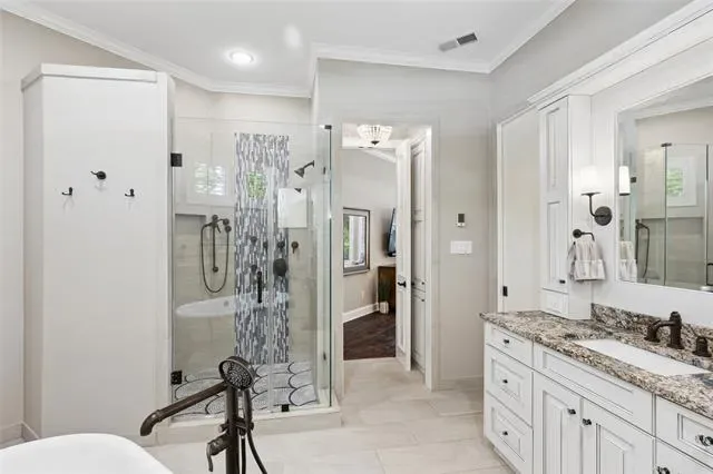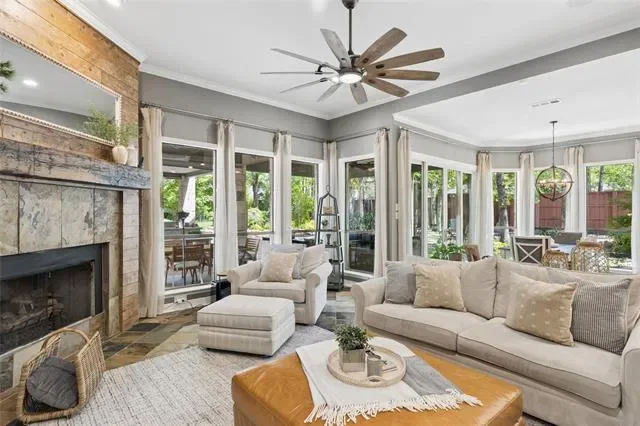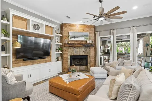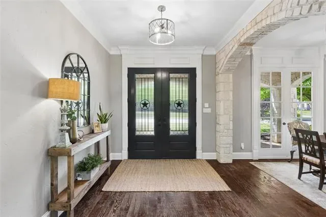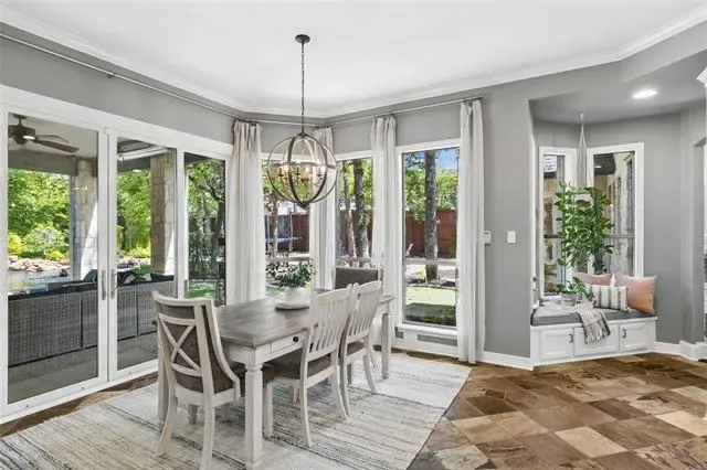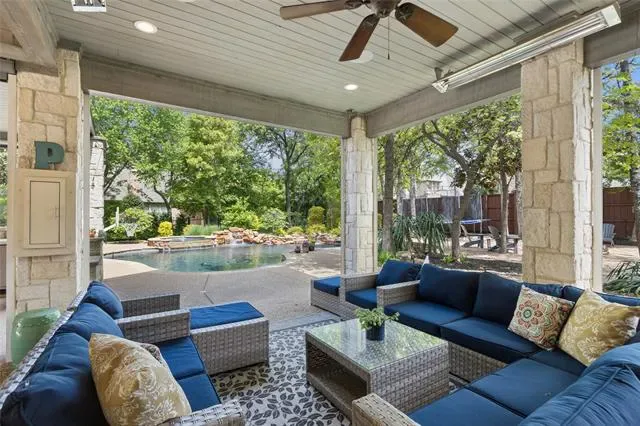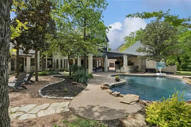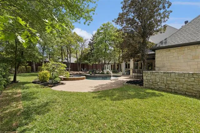Welcome Home! Highly sought after Oakmont Hills neighborhood. Beautiful curb appeal, walk up to large covered front porch, stone arches, sit and relax while welcoming guests. Enter through double iron, glass doors, to oversized entry. Crown molding, rich wood flooring. Meticulously maintained inside and out, see list in documents of enhanced features current owners have done to the home. 2 story living room, currently sitting room has wall of windows overlooking the oasis that awaits outdoors. Formal dining and study just off of the entry. Kitchen, breakfast area and family room are open, again with stunning views directly into the backyard. Primary suite and guest room are on the first floor, as well as laundry and mud room. Primary suite offers bay windows with another stunning view of the backyard. Updated primary bath and closet. Flowing main staircase and back staircase lead you to 3 additional large bedrooms all with en suite baths. Large open hallway, which is loft like. Wood risers with wrought iron balusters frame staircase, at the top of the stairs enter through double french doors to game room with balcony over looking the yard and pool, step up to media room. Wet bar with cabinetry. This home truly offers everything, especially when you step outside to your amazing backyard paradise, a true resort style retreat! Where indoor comfort meets outdoor luxury! When not relaxing in the pool there are so many areas within the yard as well as the covered patio to sit back, relax and enjoy Texas beautiful sunsets. huge L shaped counter with built in BBQ, beverage frig, bar with seating. 2 oversized split garages offer extra parking between and behind electric gate. Don’t miss out on the opportunity to move into this stunning home and neighborhood.
