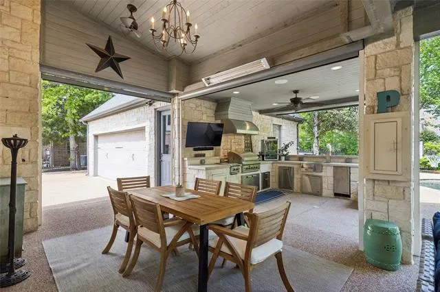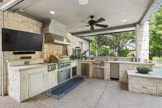 Attached Grill, Balcony, Built-in Barbecue, Covered Patio/Porch, Rain Gutters, Lighting, Misting System, Mosquito Mist System, Outdoor Kitchen, Outdoor Living Center, Putting Green