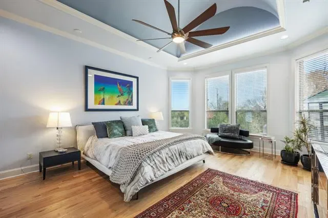 Step inside to EXQUISITE CRAFTSMANSHIP and abundant natural light. The GRAND ENTRY showcases a luxurious, wrought iron staircase and SOLID RED OAK hardwood floors, leading into an open-concept family living room and ensuite guest quarters on the main floor.