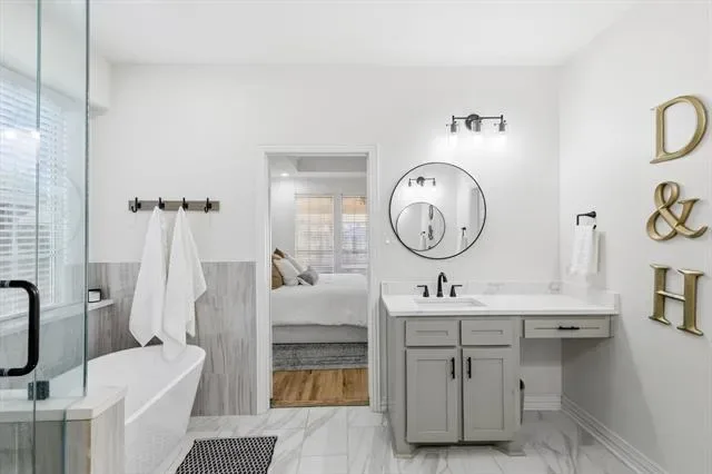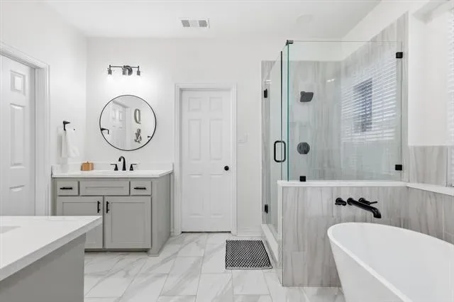 THIS IS IT! You CAN have a gorgeously remodeled home on almost a HALF ACRE in Keller ISD! This fantastic property has an entire second lot as the backyard, beautifully utilized with lots of room to play, a recently refinished and updated pool with slide and perimeter fence, a pool bath, and landscaping. The home features gorgeous hardwoods and the floor plan everyone is looking for, with the primary suite AND secondary suite downstairs, plus an office with beautiful builtins and two secondary bedrooms and game room upstairs. The kitchen is gorgeously reimagined with quartz counters, SS apps, gas cooktop, and modern backsplash. Primary bathroom is an oasis with updated shower, countertops, floors, & standalone tub. Fresh paint & carpet throughout. Newer HVAC, water heater, extra lighting and pool equipment. Refrigerator, washer and dryer included All this on a cul-de-sac and feeding to Hidden Lakes Elementary and Keller High. Enjoy all the amenities of Hidden Lakes Community, walking and jogging trails, parks, pools, clubhouse, soccer fields and volleyball court. Hidden Lakes is the Heart of Keller.