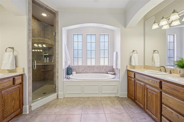 The backyard truly feels like a private resort. Enjoy a stunning pool and spa with beach entry, a built-in grill, and an expansive patio—ideal for relaxing evenings or lively gatherings. This home offers the best of indoor luxury and outdoor living in one of Keller’s most desirable neighborhoods.