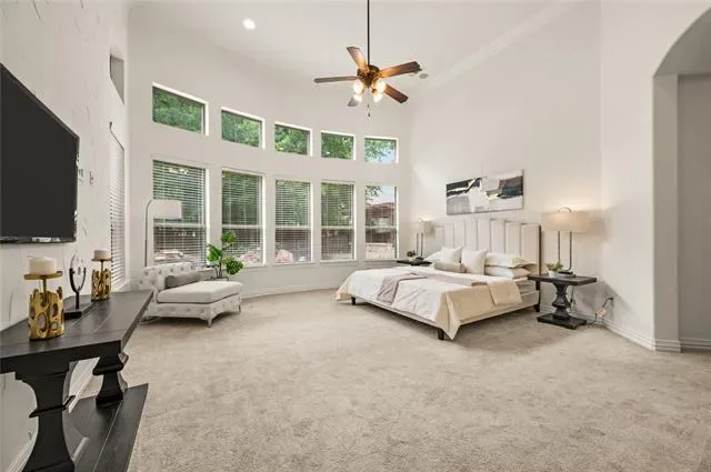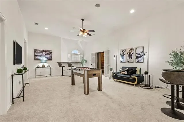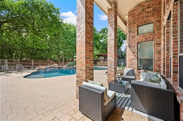 Half acre lot, heated saltwater pool, outdoor covered kitchen and 3 car garage, great parking arrangement. Excellent school district, premier location. 3 junior Olympic-sized swimming pools, playgrounds, a clubhouse, sand volleyball, soccer and miles of paved hike or bike trails are all available to you. Also very close proxcimity to Sky Creek Ranch Golf Course a semi-private golf club which includes full bar & grill, practice facility, lessons, and pro-shop topped off with a fabulous, well maintained championship golf course. Built by Drees Homes, the front elevation is a combination of brick, stone and capstone trim, rectangular shaped lot, abundance of windows (all glass replaced) and a side entry 3 car garage. Inside includes a well appointed home office with outdoor terrace, 3 dedicated living rooms (2 down), wine storage room, stone mantle fireplace, upstairs kitchenette, media room, 3rd living or gameroom wide upstairs double-sided mezzanine, & a split bedroom arrangement, (over-sized bedrooms), (all bedroom features their own private bath). Incredible kitchen comes with commercial grade appliances, generous cabinet storage, full pantry, over-sized island, ample counter prep space and rare views of your half acre wooded lot. The inviting primary bedroom includes high ceilings, backyard views and a well designed master bath with separate back to back vanities, over-sized enclosed shower, private jetted tub area, professional paint touches, large designer tile and 2 full walk in closets. Complete recent repaint, 2 variable timing TRANE HVAC systems, recent roof replacement. all window glass panels replaced, carpet replaced, all performed recently. Heated saltwater pool, abundance of pave stone decking, complete outdoor kitchen, adjustable basketball goal, paved practice area, and more backyard space to spare! Rare lot price to sell!